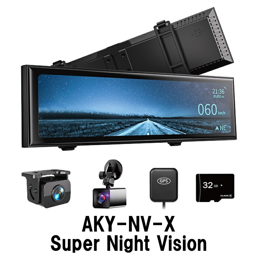 ■■■ Description 商品内容 AKEEYO ドライブレコーダー ミラー型 AKY-NV-X 特徴 【フルカラーナイトビジョン・BSD後方死角検知システム・安全運転を守る】 「AKY-NV-Xナイトビジョン」は、肉眼では見えない暗闇を投影する光学機器であり、撮られた映像は、11インチ・1920Pの高解像度液晶画面にフルカラーでリアルタイム表示されます。 街灯が無い道、雨が降る...